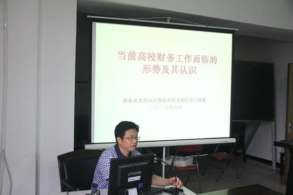 6月15日,应计算机学院邀请,校审计处处长崔跃武和财务处处长朱炜在计算机学院学术报告厅分别举办了题为《掌握科研政策,规避经费风险》、《当前高校财务工作面临的形势及其认识》专题讲座。计算机学院所有科研项目负责人聆听了报告会。